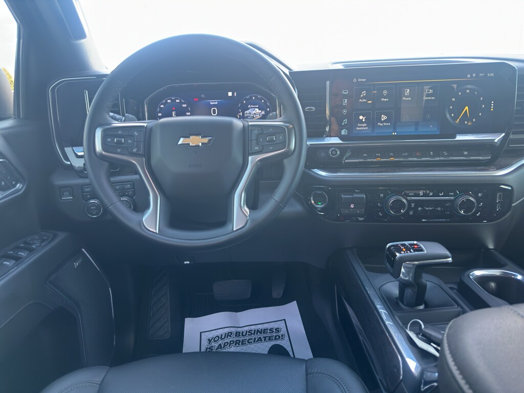 The Chevrolet Silverado is equipped with the latest generation of XM/Sirius Radio. Protect the Chevrolet Silverado from unwanted accidents with a cutting edge backup camera system. This Chevrolet Silverado comes equipped with Android Auto for seamless smartphone integration on the road. The leather seats in this 2023 Chevrolet Silverado 1500 are a must for buyers looking for comfort, durability, and style. An off-road package is installed on this vehicle so you are ready for your four-wheeling best. The steering wheel audio controls on this unit keep the volume and station within easy reach. Keep your hands warm all winter with a heated steering wheel in this vehicle . This vehicle has automated speed control that adjusts to maintain a safe following distance, enhancing highway driving convenience. The vehicle features a hands-free Bluetooth phone system. Start this vehicle from inside with remote start. This unit stays safely in its lane with Lane Keep Assist.