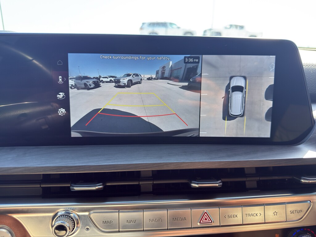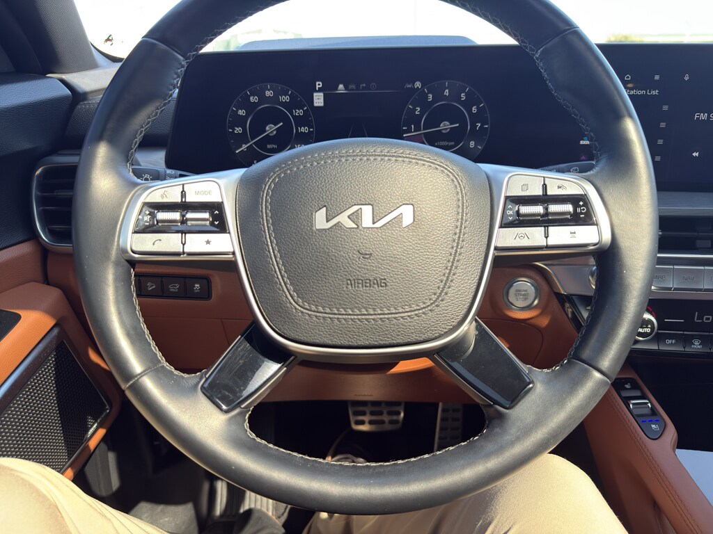 Bluetooth technology is built into the vehicle, keeping your hands on the steering wheel and your focus on the road. Start this unit from inside with remote start. This vehicle utilizes collision avoidance to enhance safety by automatically detecting and evading potential accidents. It is pure luxury with a heated steering wheel. The installed navigation system will keep you on the right path. See what's behind you with the back up camera on this 1/2 ton suv. The vehicle offers Android Auto for seamless smartphone integration. The leather seats in this Kia Telluride are a must for buyers looking for comfort, durability, and style. This 2023 Kia Telluride 's Lane Departure Warning keeps you safe by alerting you when you drift from your lane. Apple CarPlay: Seamless smartphone integration for this 1/2 ton suv - stay connected and entertained on the go! This model is equipped with all wheel drive.